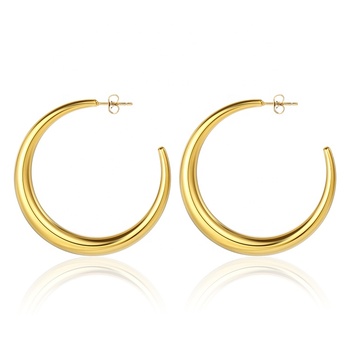 फैशन गहने ज्यामितीय चंद्रमा संवर्धन बाली असली सोना मढ़वाया बिग सी आकार स्टाइलिश स्टड कान की बाली
